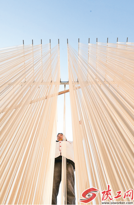 制作好的手工空心挂面。 1月4日,渭南市临渭区崇凝镇线王村村集体挂面作坊晾晒场上,村民正在整理刚挂好的空心面。 近年来,线王村采用“党建+村集体+农户”的模式,成立挂面小作坊,优先吸收有