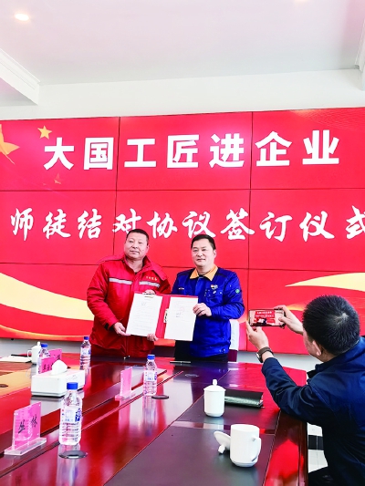本报全媒体记者 李旭东 张新停(右)与企业签订师徒结对协议。这几天,大国工匠、中国兵器首席技师、西北工业集团有限公司钳工张新停正带领团队对工作室进行新一轮升级改造。在他看来,工作室不仅是技术攻关的阵地